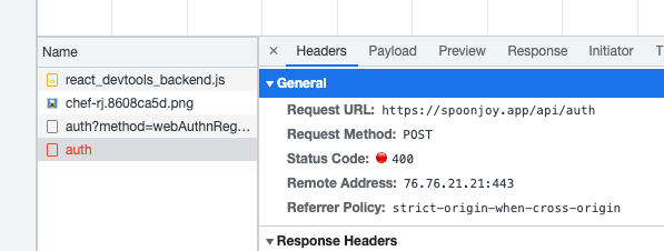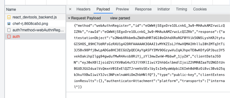 The last place I wanted to suggest starting to debug this is within webauthnRegister(), or whatever logic within Spoonjoy eventually makes the request to this method: